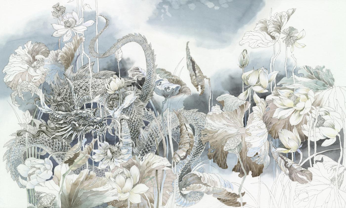 Black Dragon 2023 60 × 40 cm Watercolour markers, Watercolour, Ink, Paper Watercolour markers Watercolour Ink Paper € 950